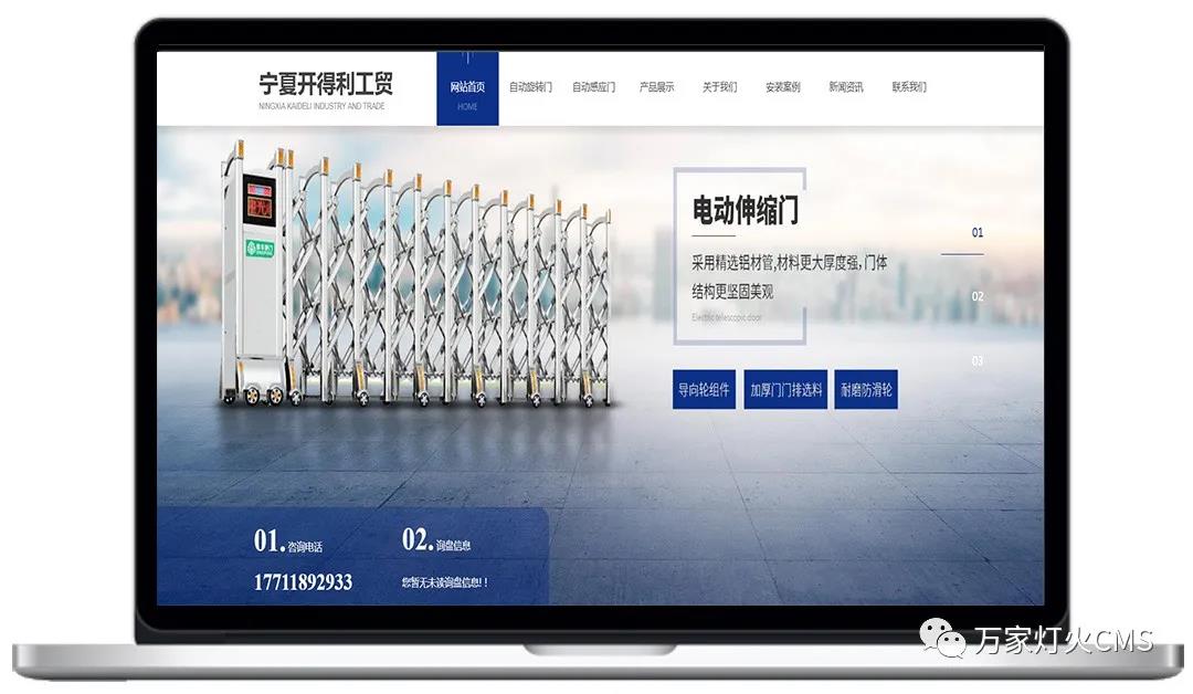 開得利工貿的許總一直積極探索互聯網營銷之路,幫助企業挖掘潛在流量。為了更好的開拓市場,增強競爭力,開得利工貿選擇與萬家燈火代理商銀川天脈網絡科技有限公司的馬經理合作了萬家燈火CMS系統。